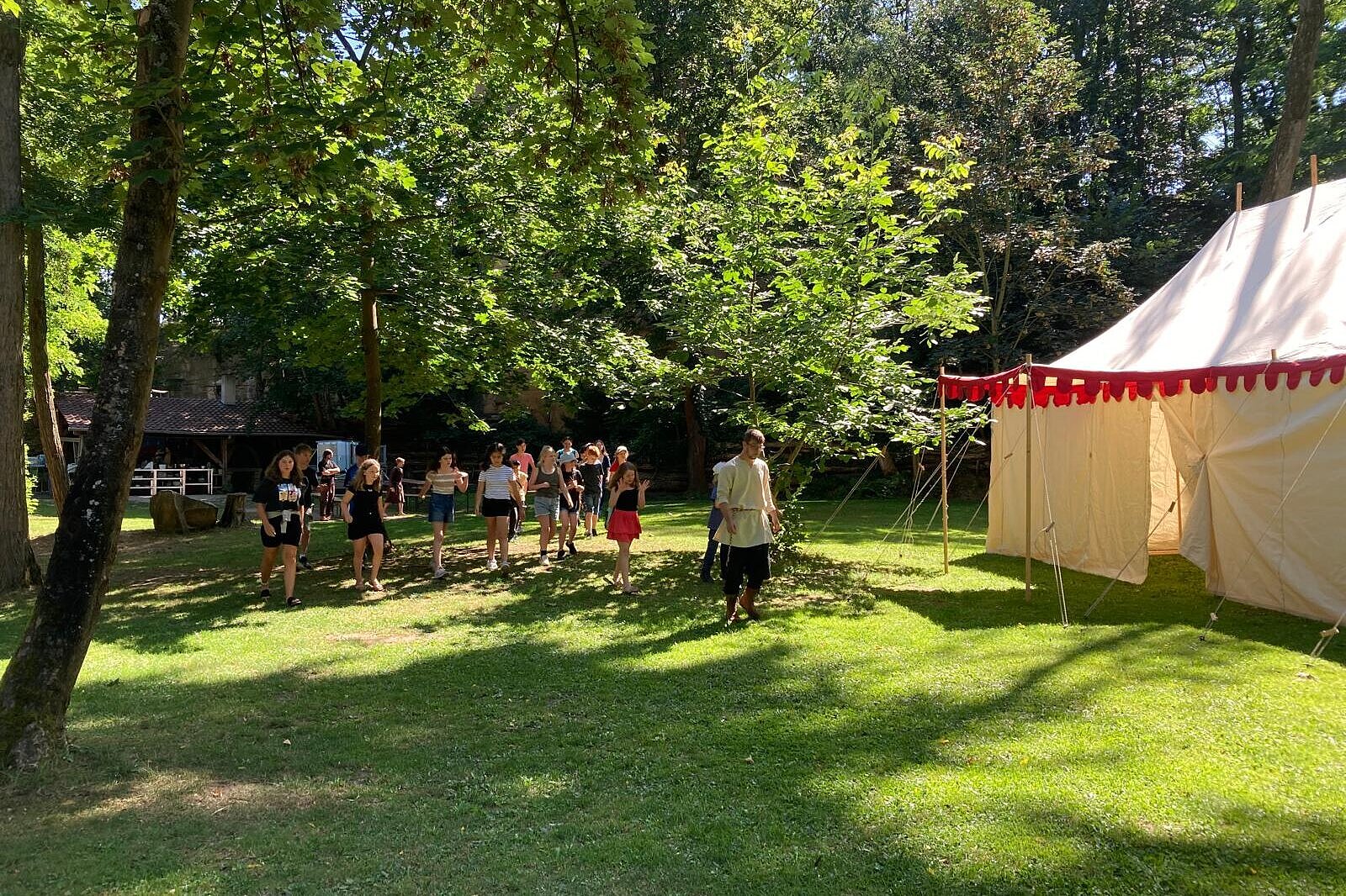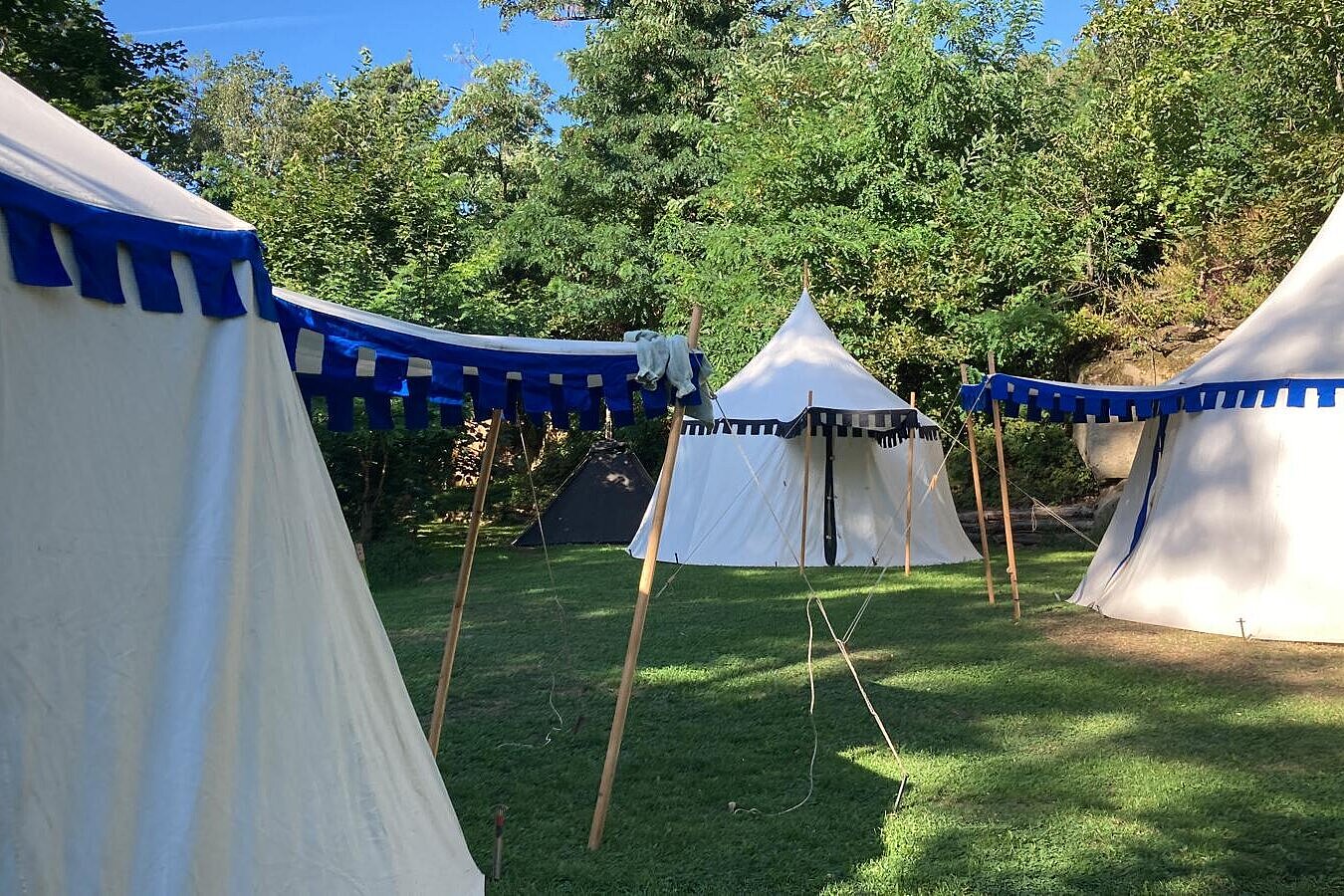 Wir leben in Mittelalterzelten und verpflegen uns selbst. Um die Zeit des Mittelalters hautnah zu fühlen, bekommen alle ein eigenes mittelalterliches Gewand.